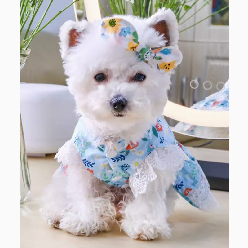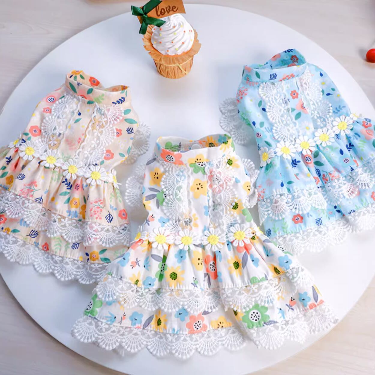 ドッグ 犬 小型犬 超小型犬 服カテゴリ ドッグウェア ワンピース スカート レース かわいい おしゃれ 個性的 主役級 存在感 ラブリー キュート 花柄 フラワー 春 夏 女の子 成犬 お出かけ リゾート 旅行 海 ビーチ XS S M L XL 黄色 イエロー ベージュ ブルー