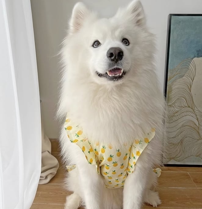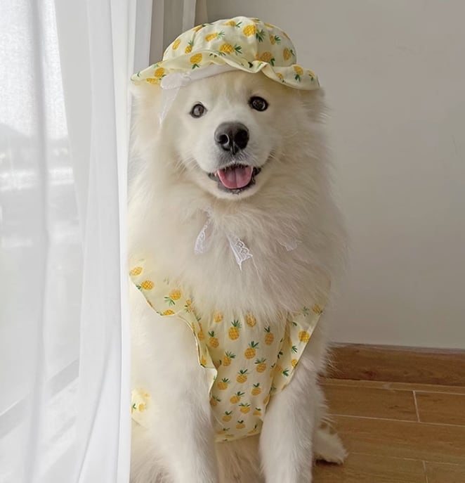 ドッグ 犬 中型犬 小型犬 大型犬 ウェア 室内着 ワンピース インナー 帽子 コスチューム アクセサリー フリルワンピース フレア フリル フルーツ ふりふり パイナップル 薄手 かわいい シンプル カジュアル おしゃれ 個性的 主役級 存在感 ラブリー キュート シンプル フルーツ柄 春 夏 秋 女の子 成犬 子ども デート お出かけ リゾート 旅行 海 プール 休日 散歩 お揃い コーデ XXS XS S M L XL 2XL 3XL 4XL 5XL 小さいサイズ 大きいサイズ イエロー