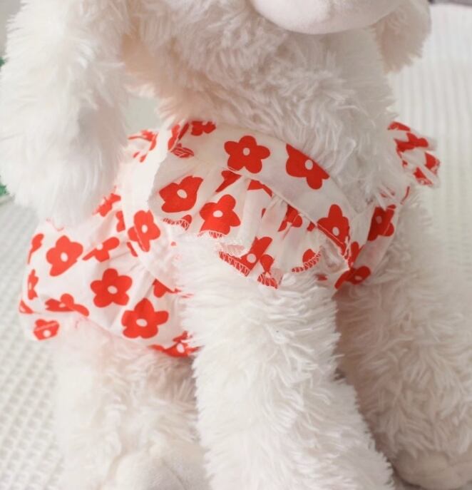 猫 ドッグ 犬 小型犬 ドッグウェア 室内着 ドレス ワンピース インナー フリルワンピース セミフレア スリム フリル お花 ふりふり ひらひら 薄手 かわいい きれいめ シンプル カジュアル レトロ モダン ラブリー キュート プリンセス フェアリー シンプル 花柄 フラワー 春 夏 女の子 成犬 子ども お出かけ リゾート 旅行 海 プール 公園 休日 バカンス 散歩 室内 お揃い S M L XL 2XL ホワイト レッド グリーン 春カラー