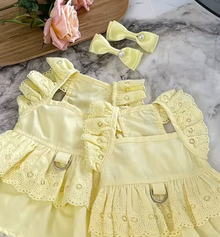 ドッグ 犬 小型犬 室内着 ドレス ワンピース スカート アクセサリー ヘアピン フリルワンピース セット フレア フリル リボン ふりふり レース パール かわいい きれいめ シンプル 上品 おしゃれ レトロ エレガント モダン 主役級 ラブリー キュート プリンセス フェアリー ラグジュアリー 無地 夏 誕生日 結婚式 ハロウィン 女の子 成犬 デート お出かけ パーティー イベント リゾート 休日 記念日 カフェ 室内 XXS XS S M L XL 2XL 3XL 大きいサイズ イエロー