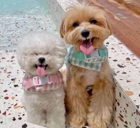プールサイドで存在感を放ち、愛犬を一層可愛く演出します。