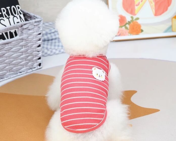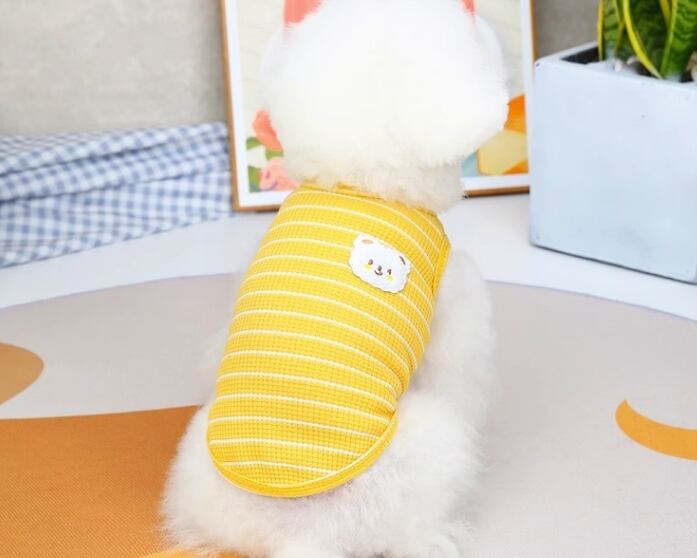 ドッグ 犬 小型犬 ドッグウェア 室内着 シャツ ストレート ノースリーブ カラフル クマ キャラクター 薄手 アップリケ かわいい きれいめ シンプル カジュアル おしゃれ レトロ ラフ ボーイッシュ かっちり ラブリー キュート 都会的 カレッジ風 アメリカン プレッピー シンプル ストライプ 春 夏 ロングシーズン サマーシーズン 男の子 女の子 成犬 お出かけ 旅行 公園 休日 散歩 ウォーキング 室内 おうち お揃い 双子 コーデ 定番 S M L XL 2XL イエロー オレンジ ブルー レッ