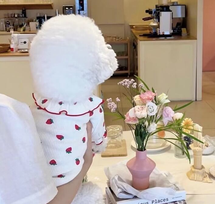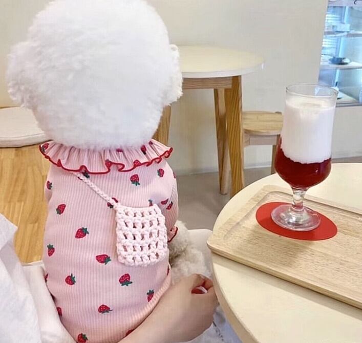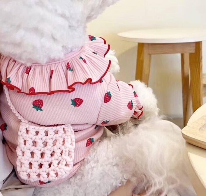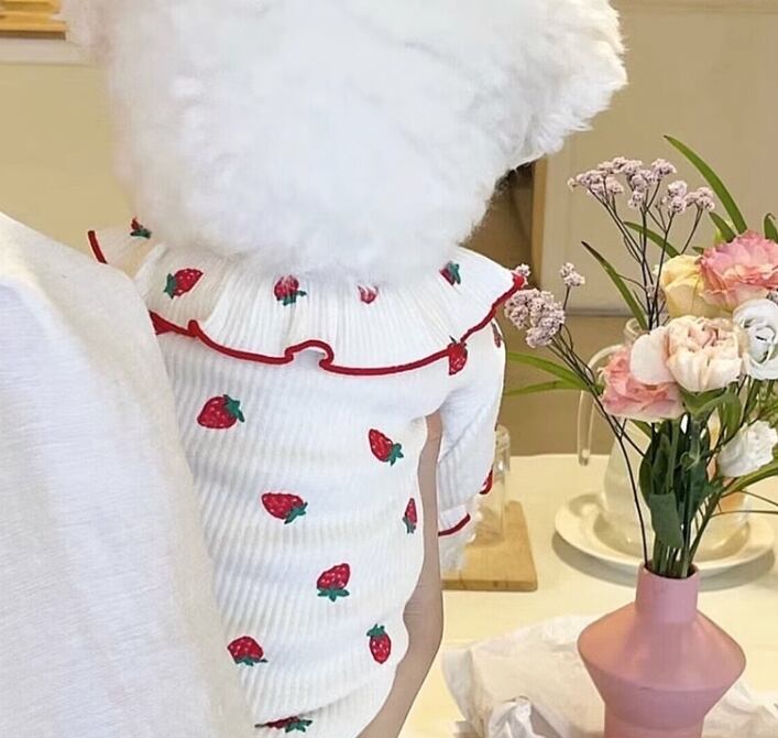 ドッグ 犬 小型犬 室内着 シャツ フレア 細身 フリル 襟付き 袖付き いちご ふりふり ひらひら 薄手 かわいい きれいめ シンプル おしゃれ レトロ ルーズ 個性的 主役級 存在感 ラブリー キュート プリンセス フェアリー シンプル シック フルーツ柄 夏 サマーシーズン 女の子 成犬 デート お出かけ お泊まり パーティー イベント 旅行 公園 休日 バカンス カフェ 庭 ガーデン 散歩 室内 おうち お揃い 双子 コーデ XS S M L 2XL ホワイト ピンク