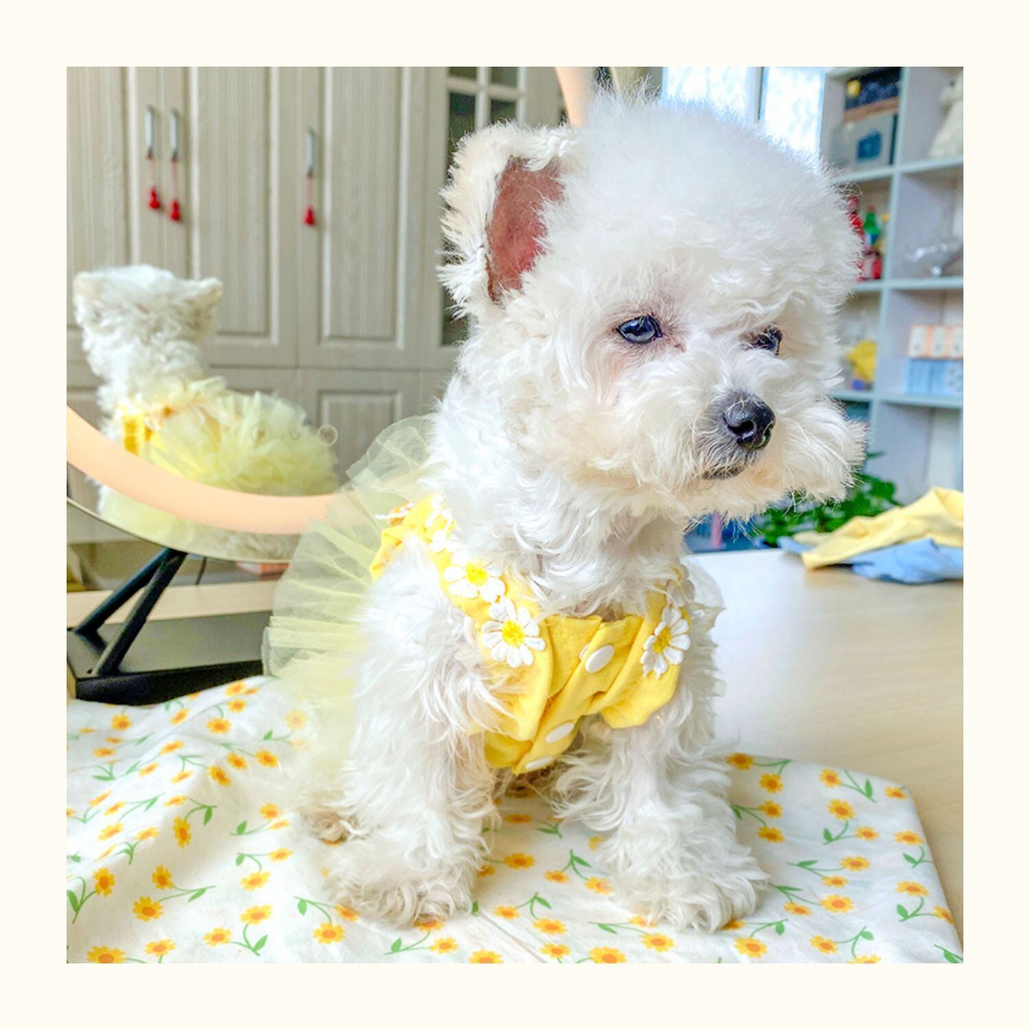 チュールが可愛いドッグワンピース。