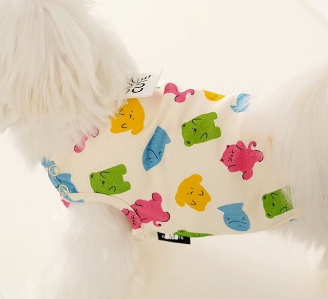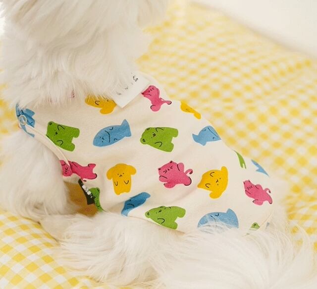 ドッグ 犬 小型犬 ドッグウェア 室内着 シャツ スリム ストレート 袖無し 肩出し カラフル クマ キャラクター 薄手 スナップボタン かわいい シンプル カジュアル ボーイッシュ ラブリー キュート カレッジ風 ベーシック プレッピー シンプル くま柄 夏 サマーシーズン 男の子 女の子 成犬 お出かけ アウトドア 旅行 公園 休日 レストラン ショッピング カフェ ガーデン 散歩 ウォーキング 室内 おうち 楽ちん S M L XL