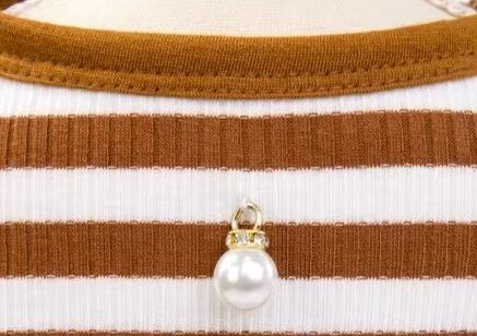 パールのアクセントがエレガントさをプラスし、ボーダー柄が