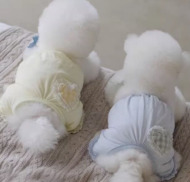 快適な室内着として活躍する犬用オーバーオール。シンプルなデザインで、男の子も女の子もおしゃれに決まるお洒落な一着です。ハートやひらひらのレースのディテールが、キュートな雰囲気を演出します。