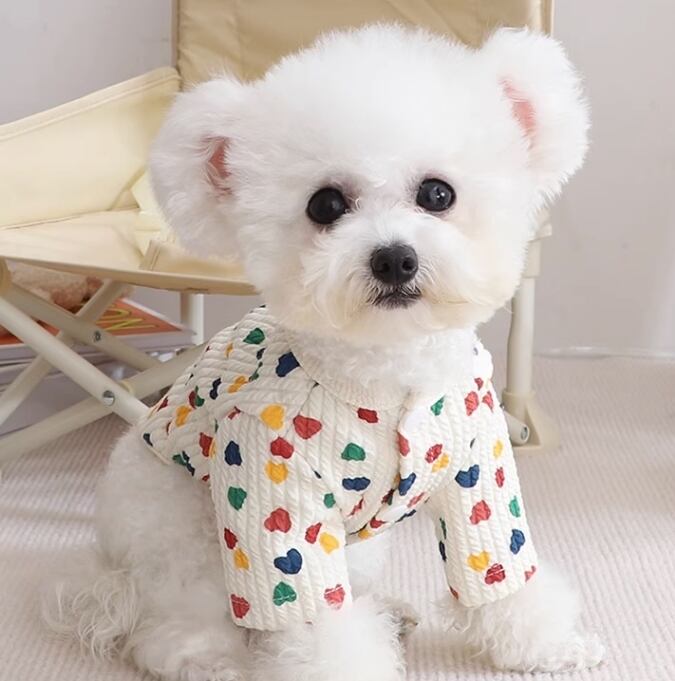 ドッグ 犬 ドッグウェア 室内着 ジャケット アウター セーター スリム 袖付き カラフル ハート かわいい きれいめ シンプル カジュアル ラフ ルーズ 個性的 かっちり ラブリー キュート プリンセス フェアリー プレッピー シンプル フレンチ シック ハート柄 夏 サマーシーズン 夏服 男の子 女の子 成犬 デート お出かけ お泊まり イベント レストラン 公園 休日 レストラン ショッピング カフェ 庭 ガーデン 散歩 ウォーキング 室内 おうち 楽ちん 定番 S M L XL 2XL