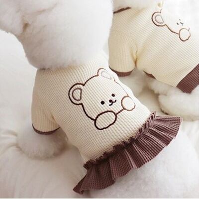 ドッグ 犬 中型犬 小型犬 ポメラニアン シュナウザー マルチーズ シーズー チワワ ヨークシャテリア 服カテゴリ 室内着 ワンピース Tシャツ オールシーズン デート お出かけ お泊まり アウトドア 公園 休日 散歩 ウォーキング 室内 お揃い インスタ映え XS S M L XL 白 ホワイト クリーム 茶色 ブラウン オフホワイト ワッフル サマーニット SNS映え インスタ映え キュート 可愛い 愛犬
