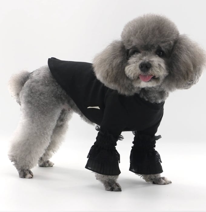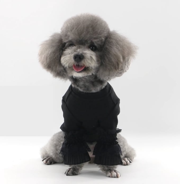 上品なレースの袖口が愛らしさを演出し、シックなカラーがペットの魅力を引き立てます。