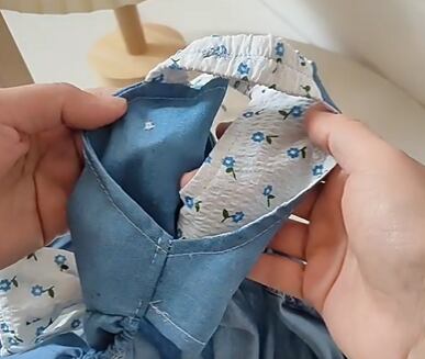 デニム仕立てのスカートがキュートなアクセントになっています。