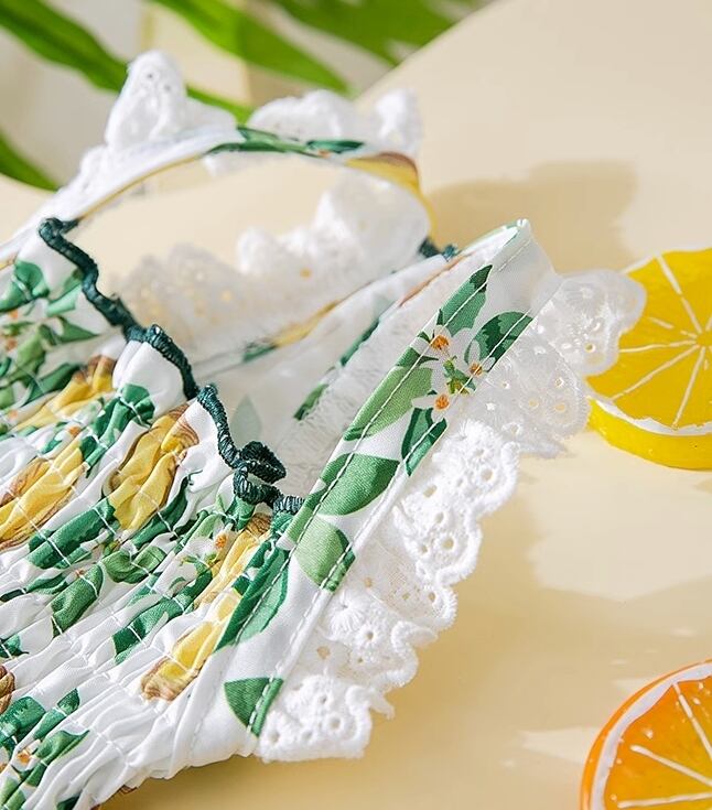 レモン柄とレースが特徴で、優雅さと華やかさを演出します。
