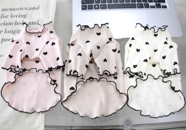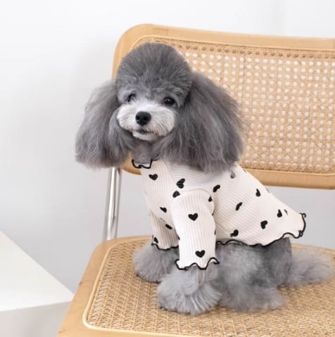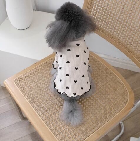 ドッグ 犬 小型犬 ドッグウェア 室内着 シャツ ベスト スリム 細身 ストレート フリル 襟付き 袖付き 長袖 ハート かわいい きれいめ シンプル 上品 おしゃれ レトロ ルーズ 個性的 クール エレガント モダン ラブリー ゴシック フェアリー 都会的 ベーシック プレッピー フレンチ シック ハート柄 柄 春 秋 春服 秋服 女の子 成犬 デート お出かけ お泊まり 公園 休日 庭 ガーデン ウォーキング 室内 おうち 楽ちん 普段使い 清楚 流行