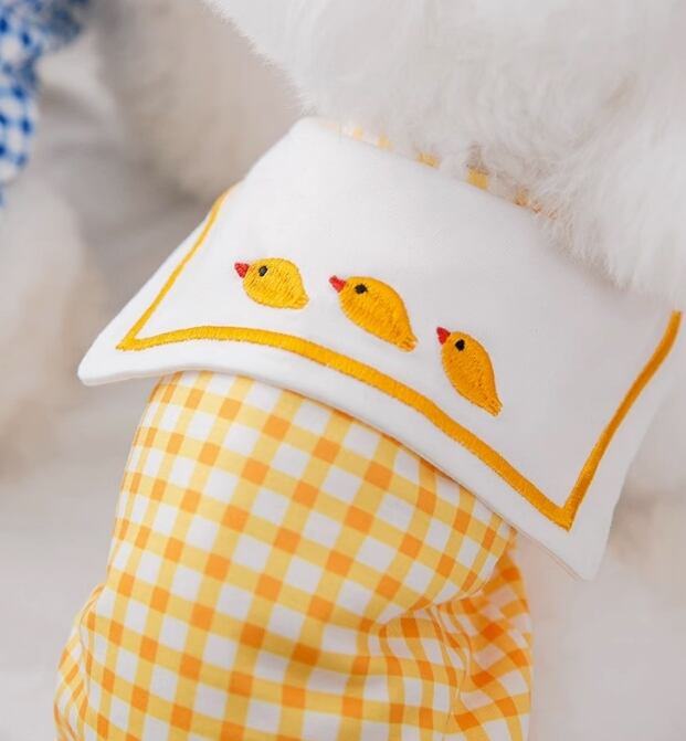 キャット 猫 ドッグ 犬 小型犬 室内着 シャツ ベスト 細身 ストレート セーラー風 襟付き 袖無し 肩出し ひよこ 薄手 刺繍 かわいい きれいめ シンプル おしゃれ レトロ 個性的 エレガント モダン フォーマル ラブリー キュート 都会的 ラグジュアリー クラシカル カレッジ風 ベーシック プレッピー シンプル セーラー服 チェック 格子柄 春 夏 ロングシーズン サマーシーズン 春服 夏服 男の子 女の子 成犬 成猫 スクール デート お出かけ お泊まり 公園 休日 散歩 ウォーキング 室内 お