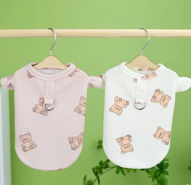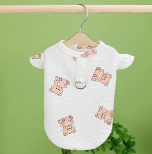 ドッグ 犬 キャット 猫 小型犬 チワワ ヨークシャテリア 服カテゴリ ドッグウェア 室内着 タンクトップ タンク Tシャツ タイト スリム クマ 薄手 かわいい カジュアル ラフ 存在感 キュート くま柄 春 夏 デート お出かけ お泊まり アウトドア 散歩 室内 XS S M L XL 白 ホワイト ピンク フリル 袖フリル ベスト 清涼感 涼しい