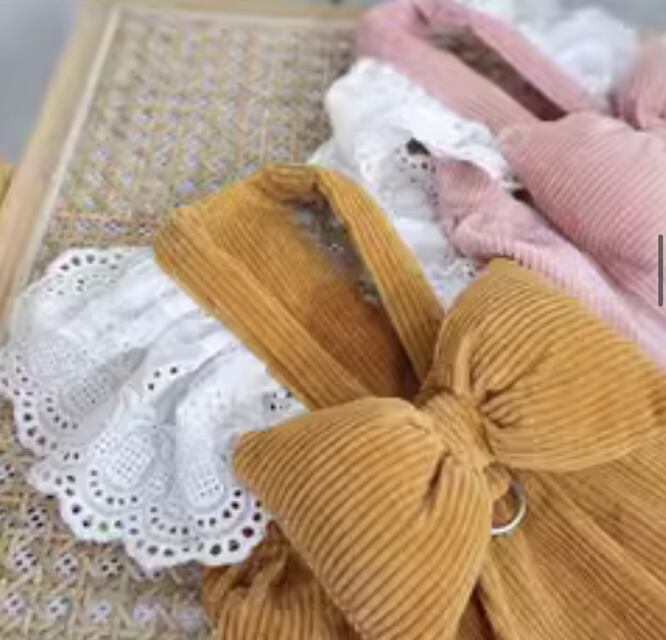 上品なリボン付きのコーデュロイ素材で、愛犬を華やかにコーディネートしてくれます。