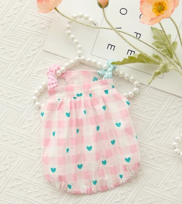 ハート&チェック柄サマーワンピースは、夏の可愛らしさを楽しむための特別なペット用ワンピースです。ハート柄とチェック柄が組み合わさったデザインが特徴で、さまざまな夏のシーンでペットのファッションを楽しめるアイテムです。