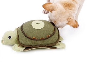 愛らしい亀のぬいぐるみ型のノーズワークトイです。ワンちゃんの知育と楽しさをサポートし、おやつを隠すことができるアイテムです。愛犬の嗅覚や探索能力を刺激しながら、頭と体を使った遊びを楽しむことができます。