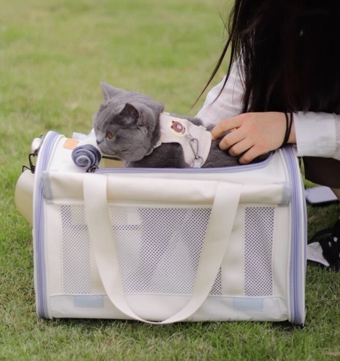愛犬や愛猫を安心して移動させるためのキャリーバッグです。メッシュ素材を使用して通気性を確保し、ブラインドが外部の刺激からペットを保護します。愛犬・愛猫との快適な旅行や外出をサポートするアイテムです。