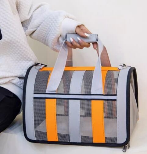 屋外での冒険やお出かけに便利なポータブルなペット用キャリアです。軽量で持ち運びが簡単でありながら、メッシュ素材の通気性が快適な環境も提供します。