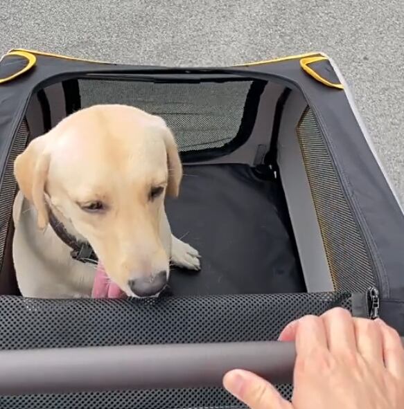 大きな犬種とのお出かけを快適にサポートするために設計された頑丈なカートで大型犬が快適に座ることができます。頑丈な構造で耐久性があり、ペットの安全と快適性を確保します。